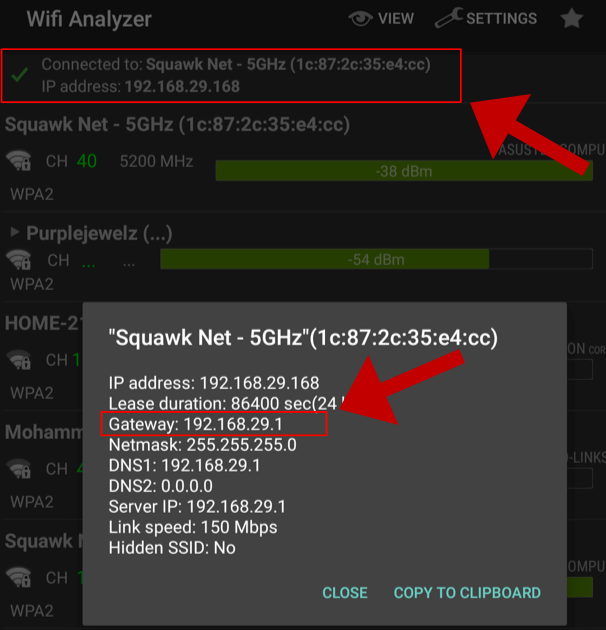 其中Default Gateway 默认网关地址就是你的路由器登录地址。 MacOS苹果系统 您有一台Mac,想找出无线路由器的IP。然后,您有2种方法来找到该IP地址。 1.单击屏幕顶部的Apple菜单。选择系统设置,然后单击该Network无线网络符号。您应该看到可用网络的列表。选择相关的网络连接,然后单击按钮Advanced。现在,单击选项卡TCP/IP,您将在其中看到路由器IP地址(在右侧)。 2.在Mac上获取路由器IP的另一种方法是打开启动板。键入terminal的搜索栏。现在将打开一个终端窗口。在新窗口中,键入netstat -nr | grep default并按Enter键。立刻,您将在文本旁边看到路由器默认IP。 Android 在Android设备上查找路由器IP的最简单,最快的方法是安装名为的应用Wi-FiAnalyzer。前往Play商店搜索Wi-Fi Analyzer。安装并打开该应用程序。点击查看并选择APlist。搜索字符串Connected to: [Network Name]。如果找到它,则tap在该字符串上。现在,您会看到一个新窗口,其中显示了网络连接的所有重要信息,包括路由器IP地址,如下图所示。