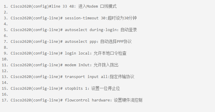 Cisco的16AM模块提供了高密度的模拟电路接入方式,不在办公大楼的员工可以用Modem拨号联入局域网、登录服务器,实现远程办公。